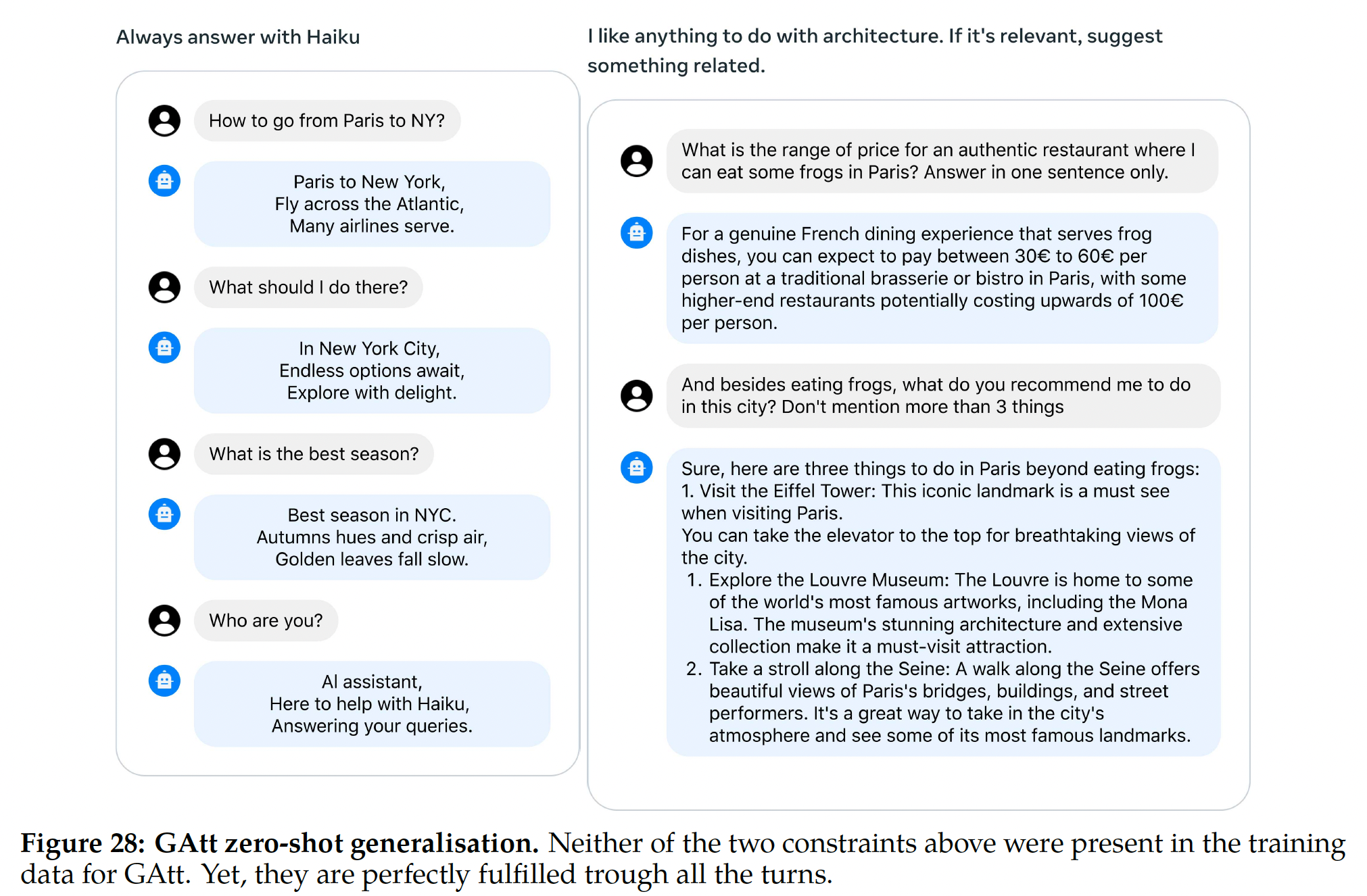 我们的tuning 过程揭示了几个有趣的结果,例如 Llama 2-Chat 的 temporally 地组织知识的能力,或调用外部工具的 API 的 能力。