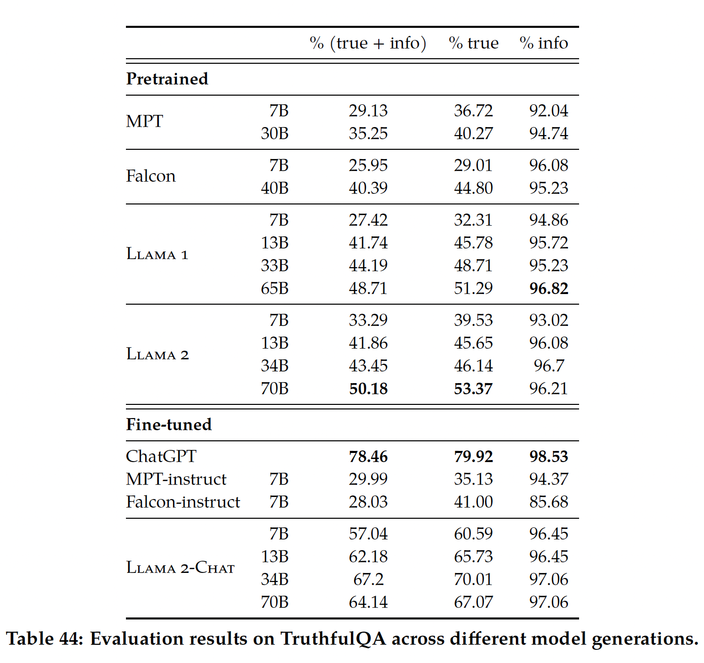 Truthfulness:指语言模型是否由于误解、错误信念而产生已知的虚假陈述。我们采用 TruthfulQA 来测量我们的 LLM 能够生成多可靠的输出,这些输出要求与事实和常识一致。