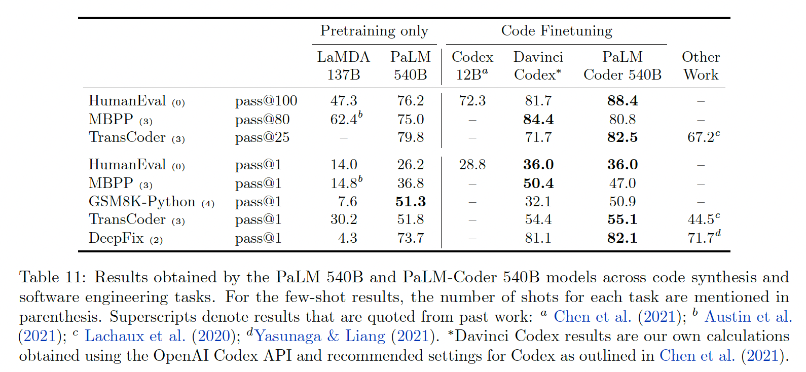 《PaLM: Scaling Language Modeling with Pathways》83 页,这里进行了精简。