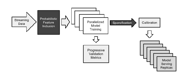 传统的解决方案是应用以并行方式训练的线性逻辑回归 logistic regression: LR 模型。具有 正则化的 LR 模型可以生成稀疏解,使得在线预估更快。