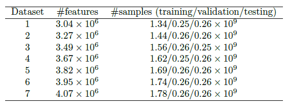 积极的特征哈希 Aggressive Feature Hashing:近年来,出现了一系列工作围绕使用特征哈希来降低大规模机器学习的内存成本。我们测试了这种方法,但是发现:这种方式会带来模型预测能力的明显下降,因此无法应用。