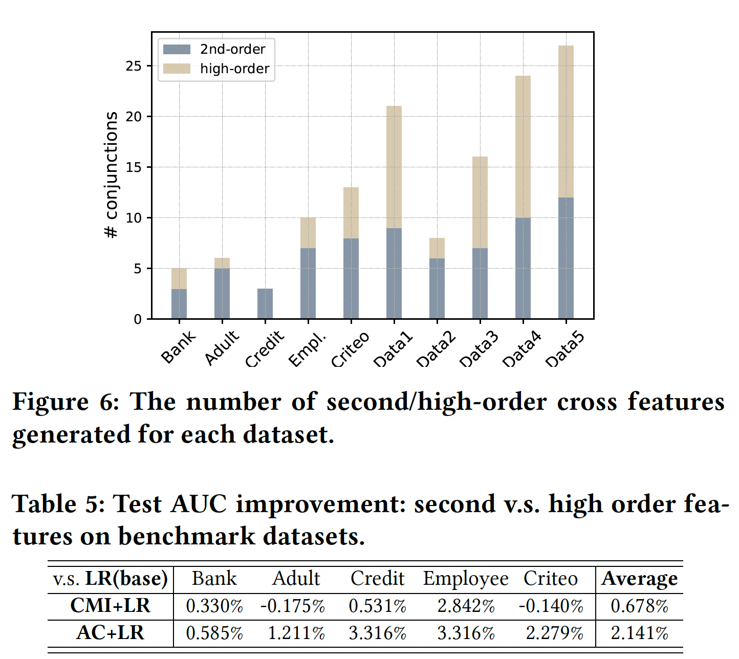 如前所述,一些方法致力于缓解这一问题:AFM 利用注意力机制为不同的交叉特征分配非均匀的权重,xDeepFM 只为保留的交叉特征学习权重。然而,这些方法引入了额外的成本,并且在模型训练前仍被限制在一个预设的最大特征交互阶次 discriminative 的高阶交叉特征的机会。