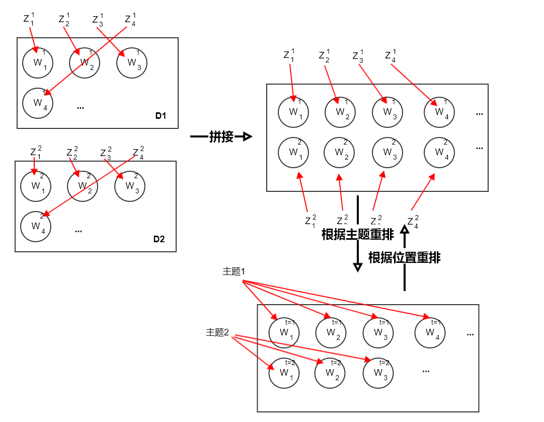 注意:虽然在文档内部, 在不同位置处不同,是变化的,因此不满足 Alias Table 的要求。但是在同一个数据块中,对于同一个单词 , 是相同的,是不变的,因此满足 Alias Table 的要求。因此 是在同一个数据块内,跨文档共享。